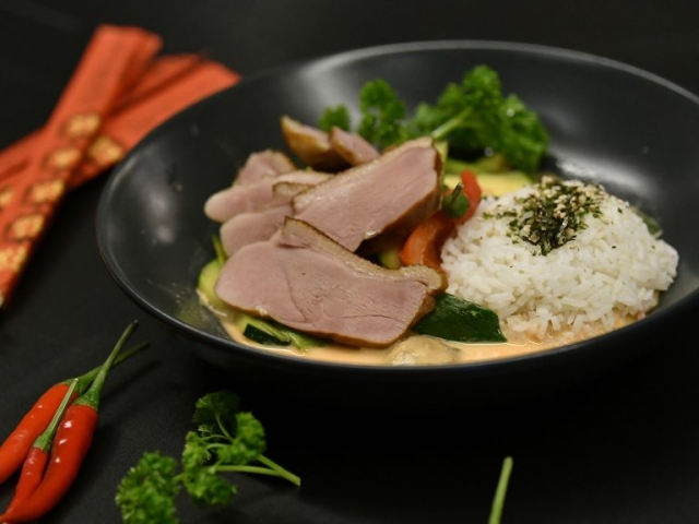 An der Golden Dragon Bar, präsentiert vom Restaurant Ruyi in Neusäß, waren Fans der asiatischen Küche richtig: Hier gab es Sashimi vom Lachs und Thunfisch, Green Papaya Salad mit getrockneten Shrimps sowie Thai-Curry (auch vegan).